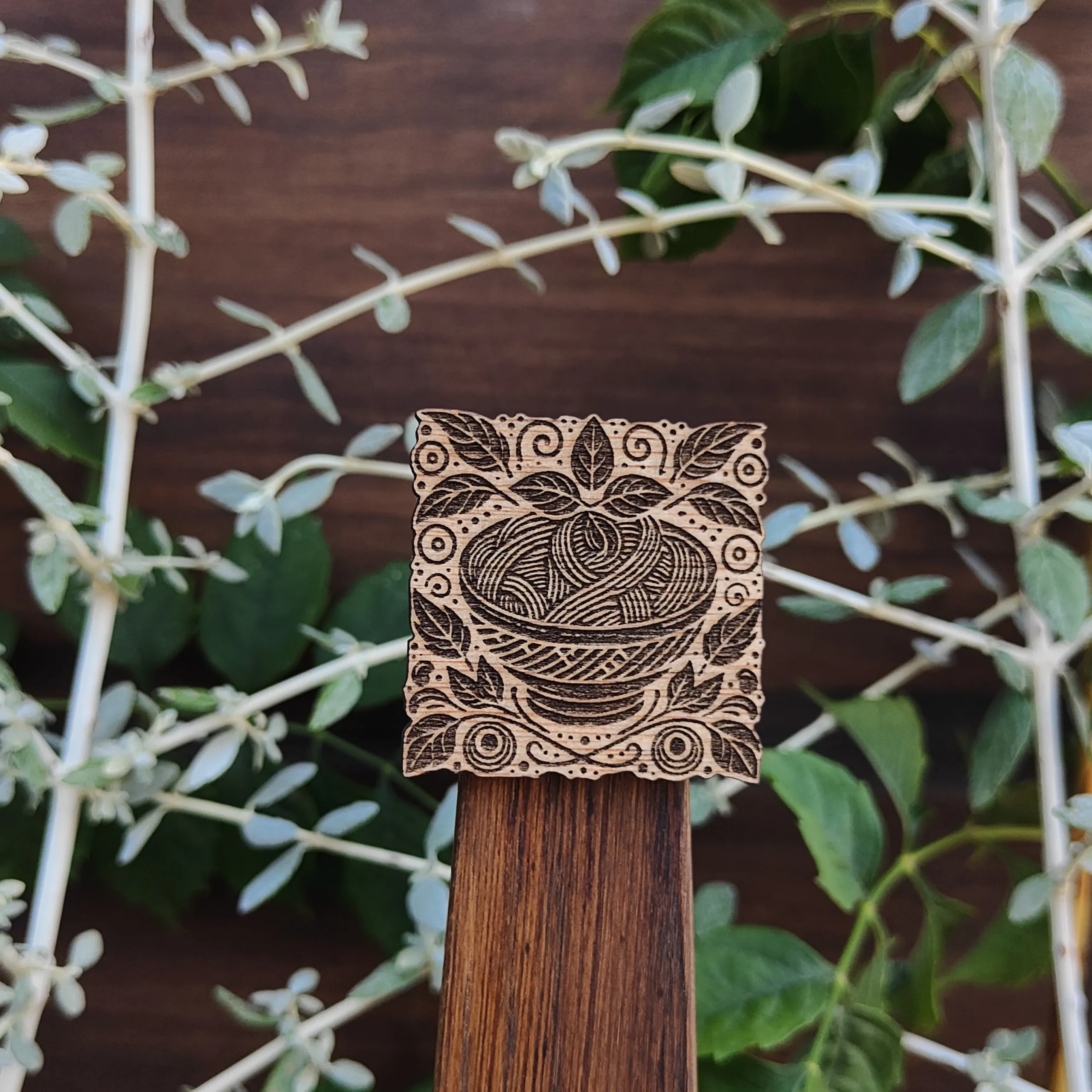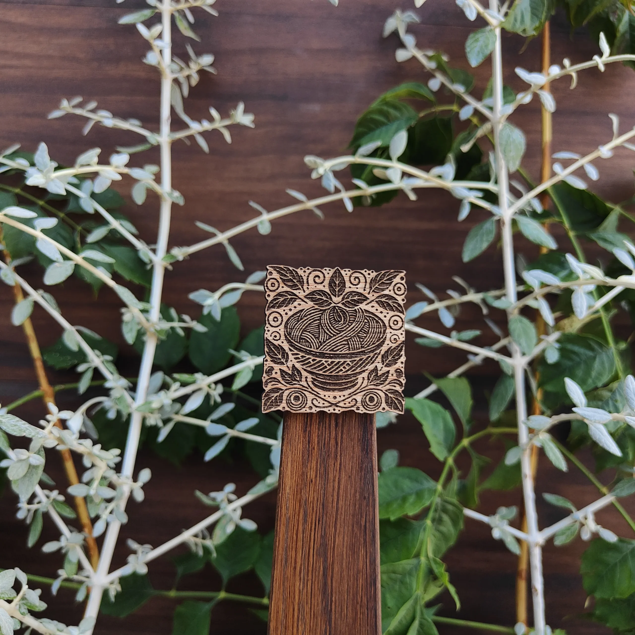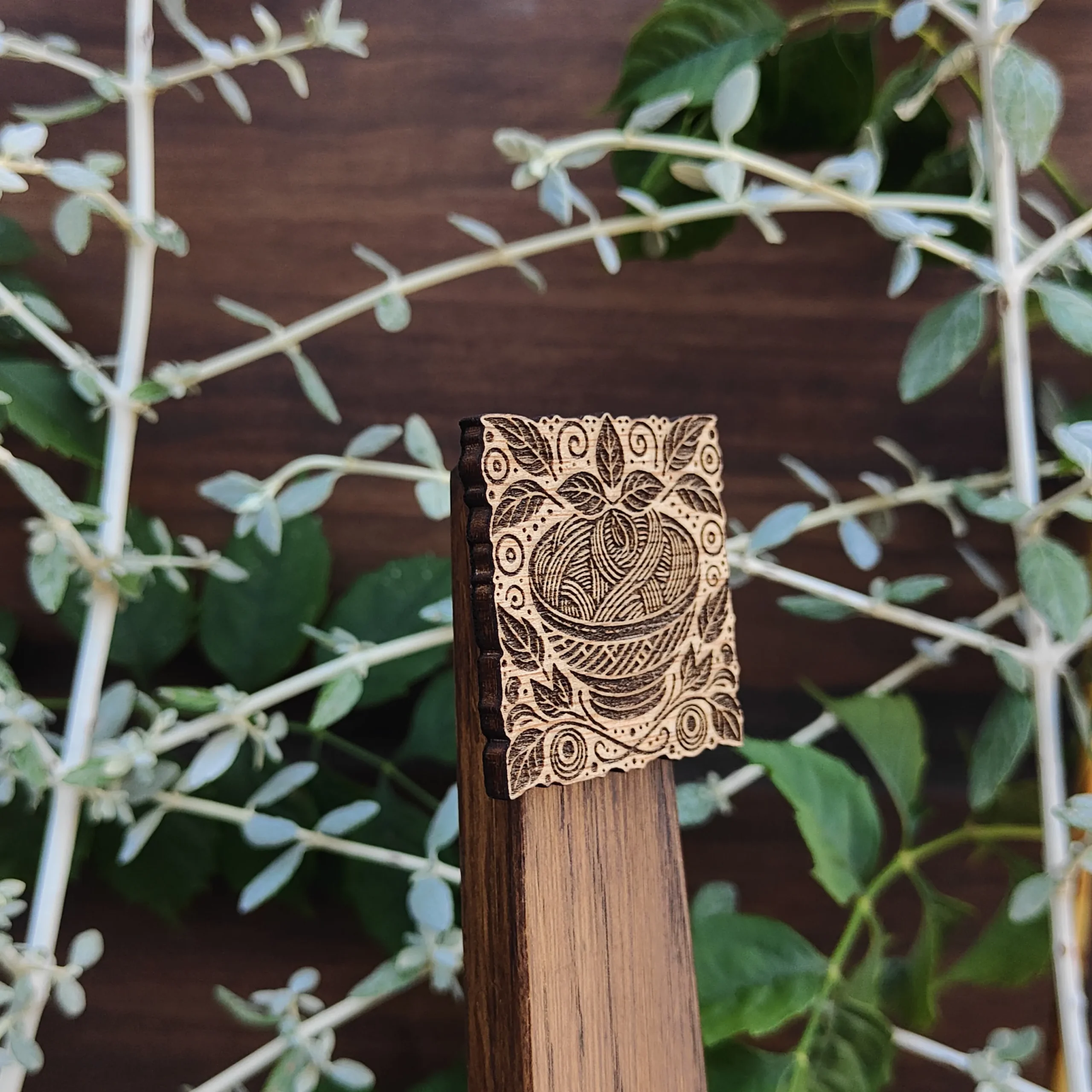 Hecho en madera quemada con relieve.