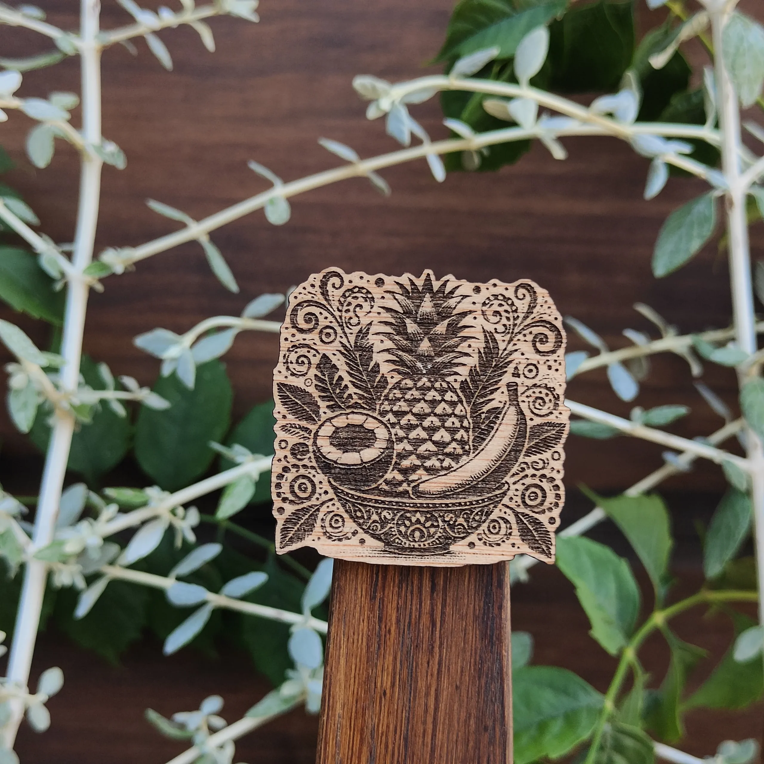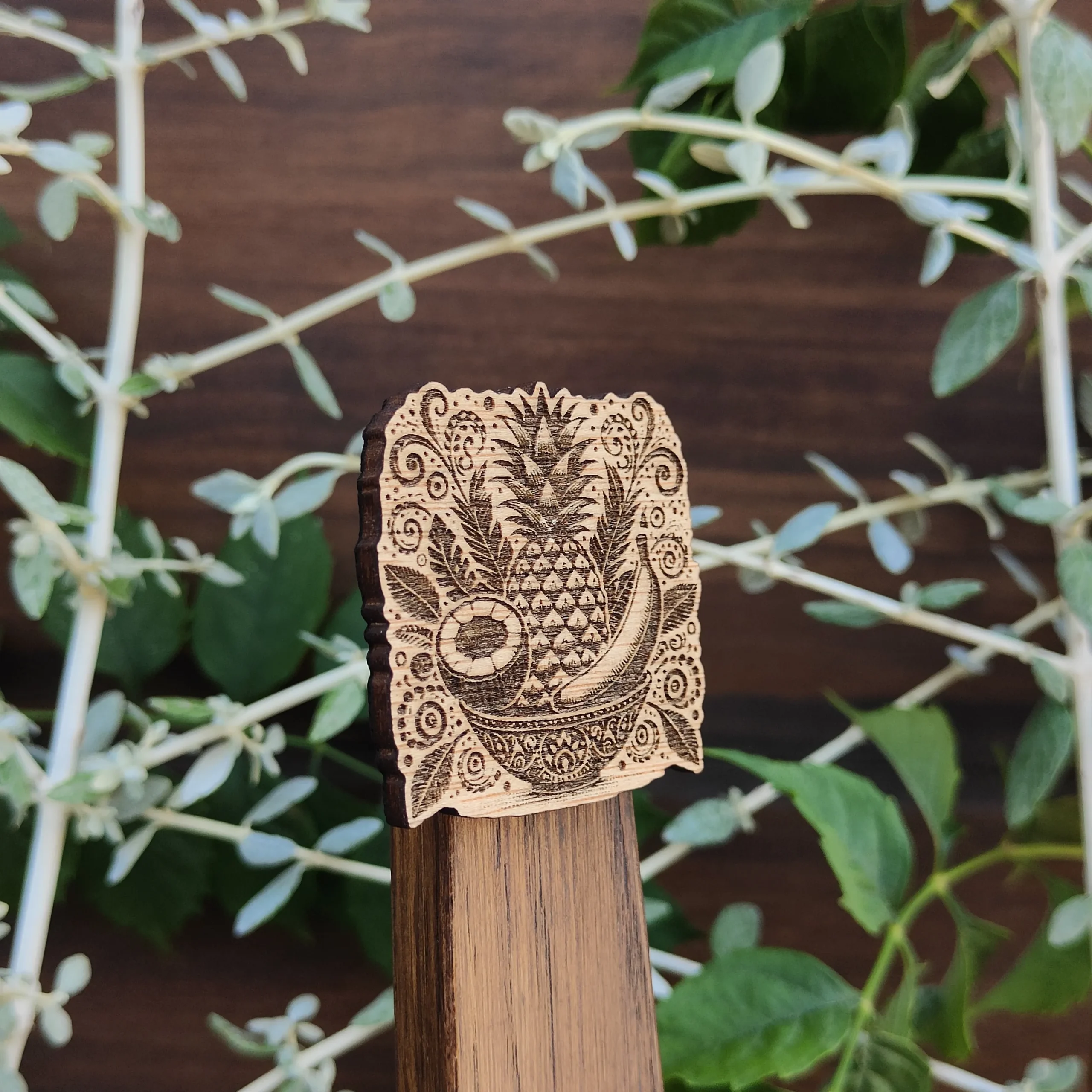 Hecho en madera quemada con relieve.