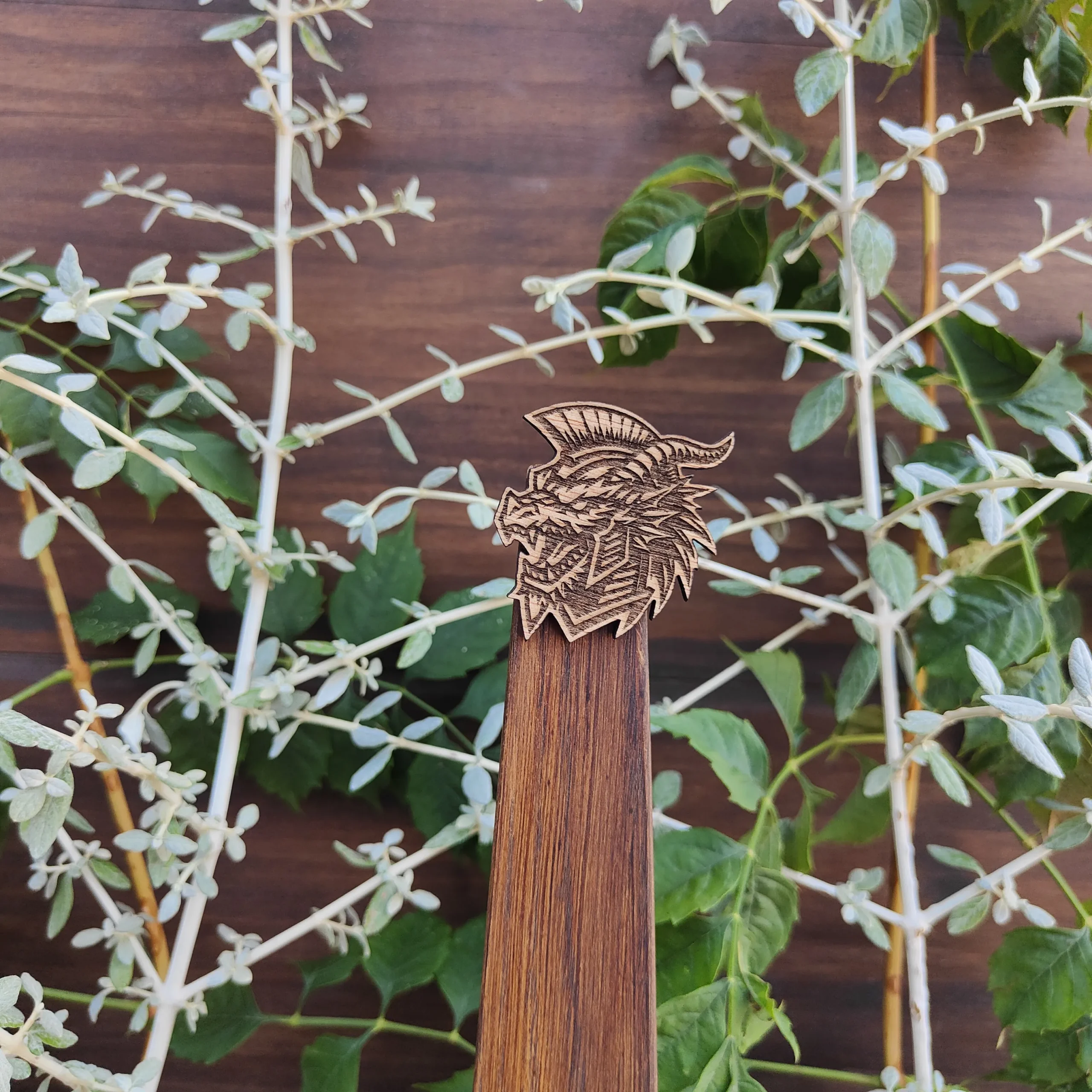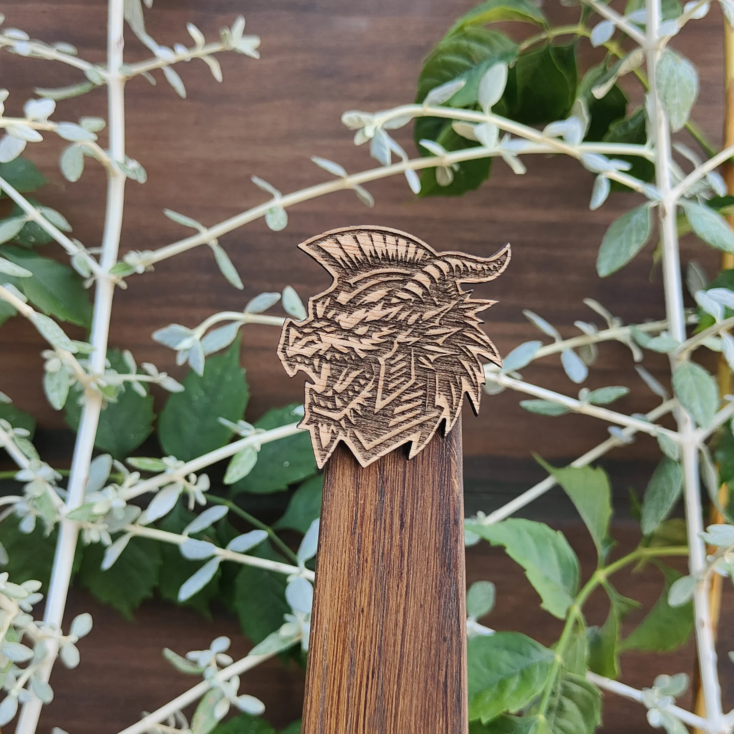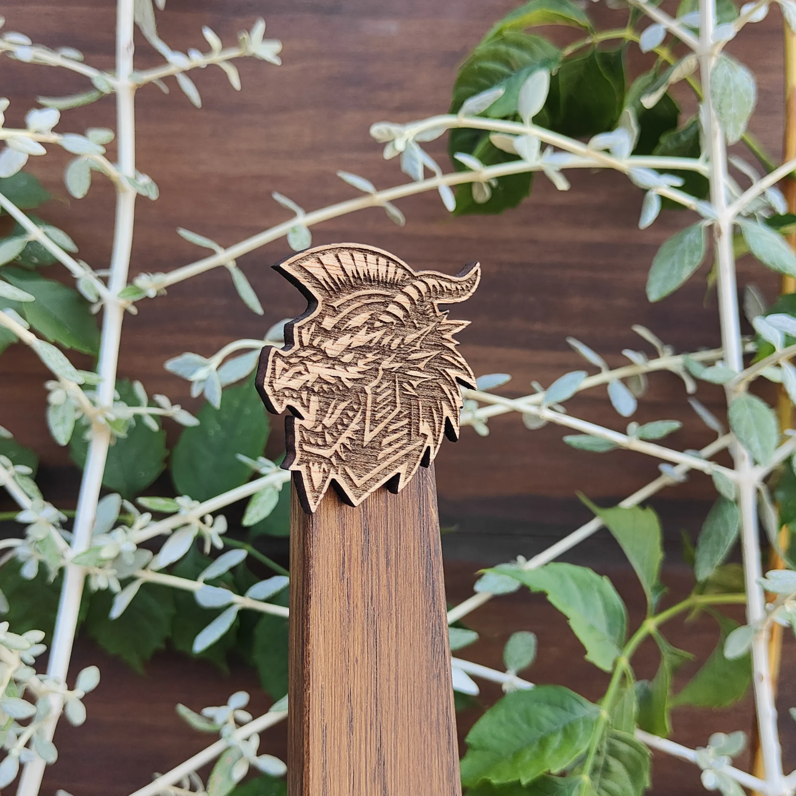 Hecho en madera quemada con relieve.