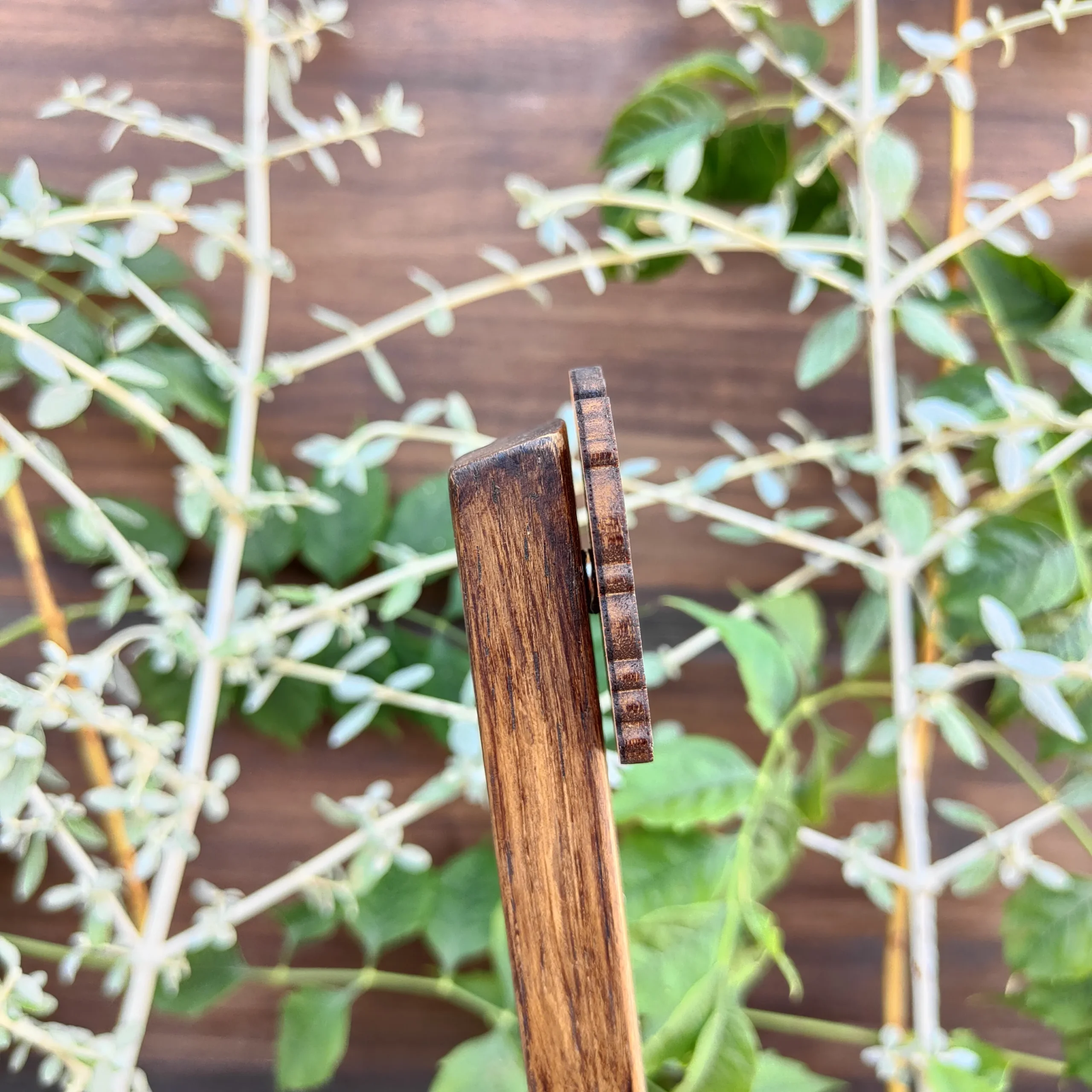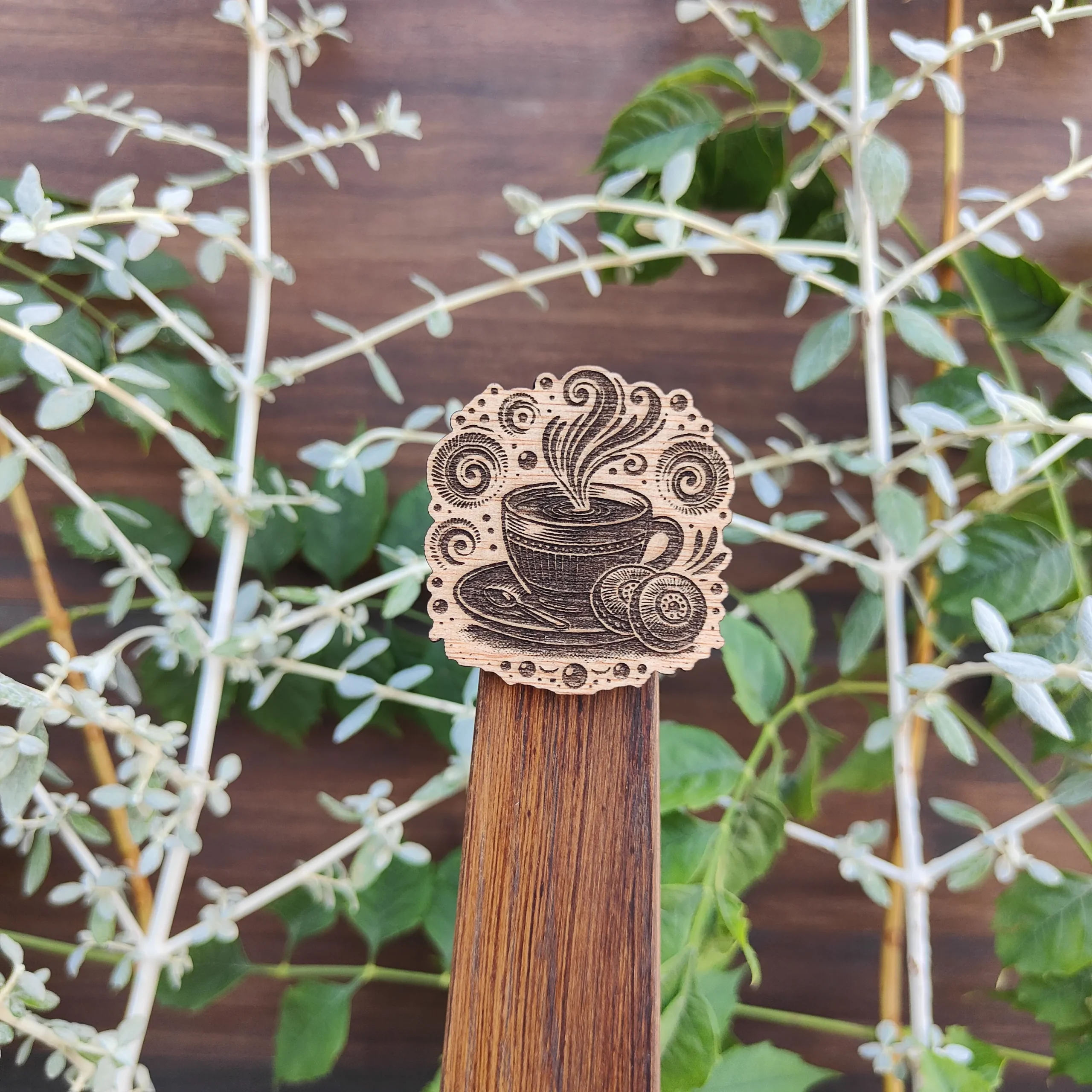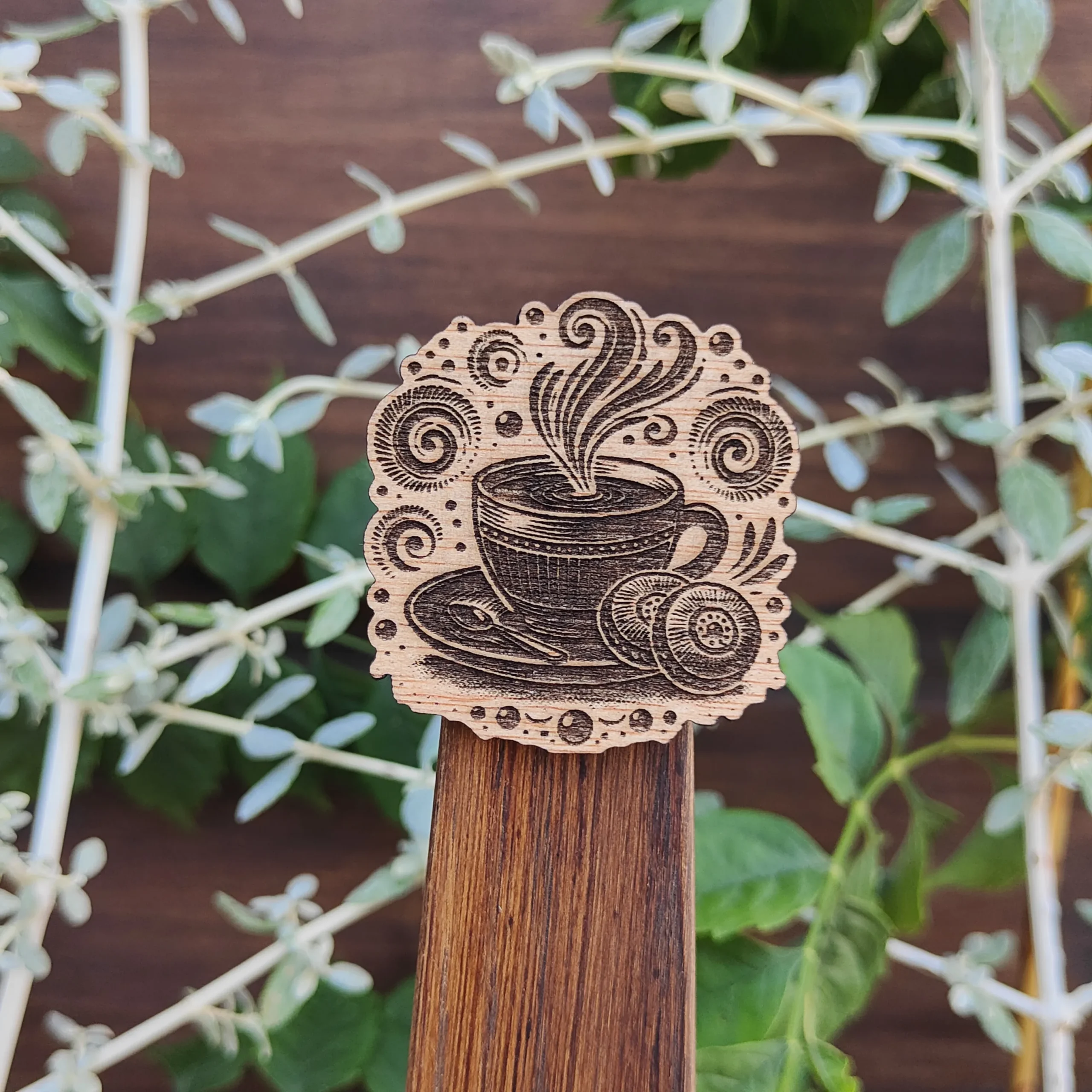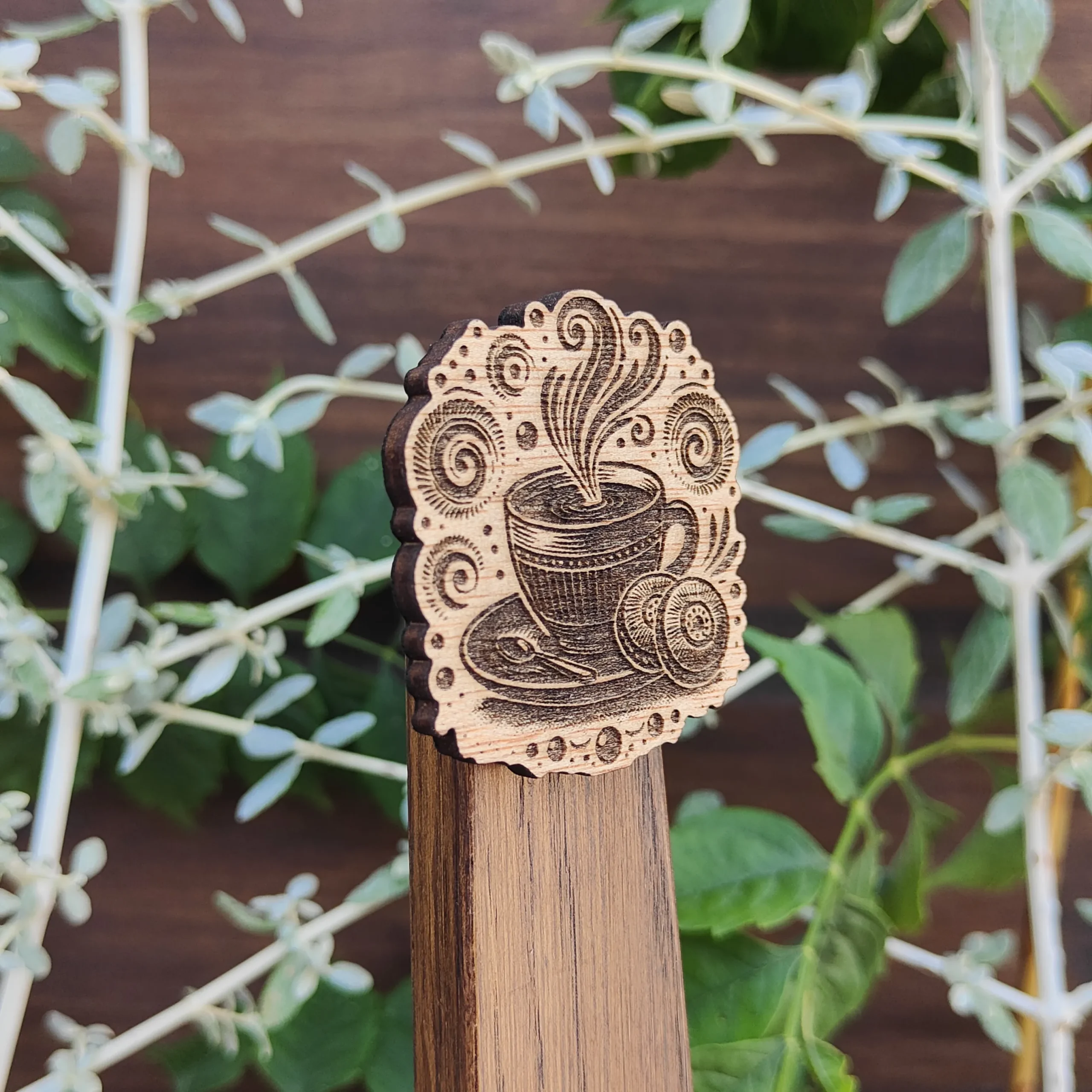 Hecho en madera quemada con relieve.